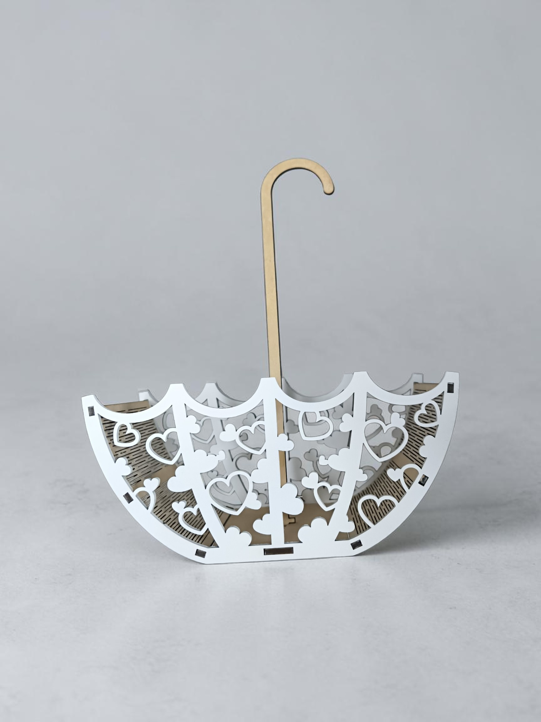 Der halbmondförmige Korb besticht durch seine filigranen Herzmuster und den eleganten Griff, der nicht nur praktisch ist, sondern dem Design eine besondere Leichtigkeit verleiht. Ob als stilvolle Aufbewahrung oder dekoratives Highlight – dieses Stück zieht garantiert alle Blicke auf sich.
